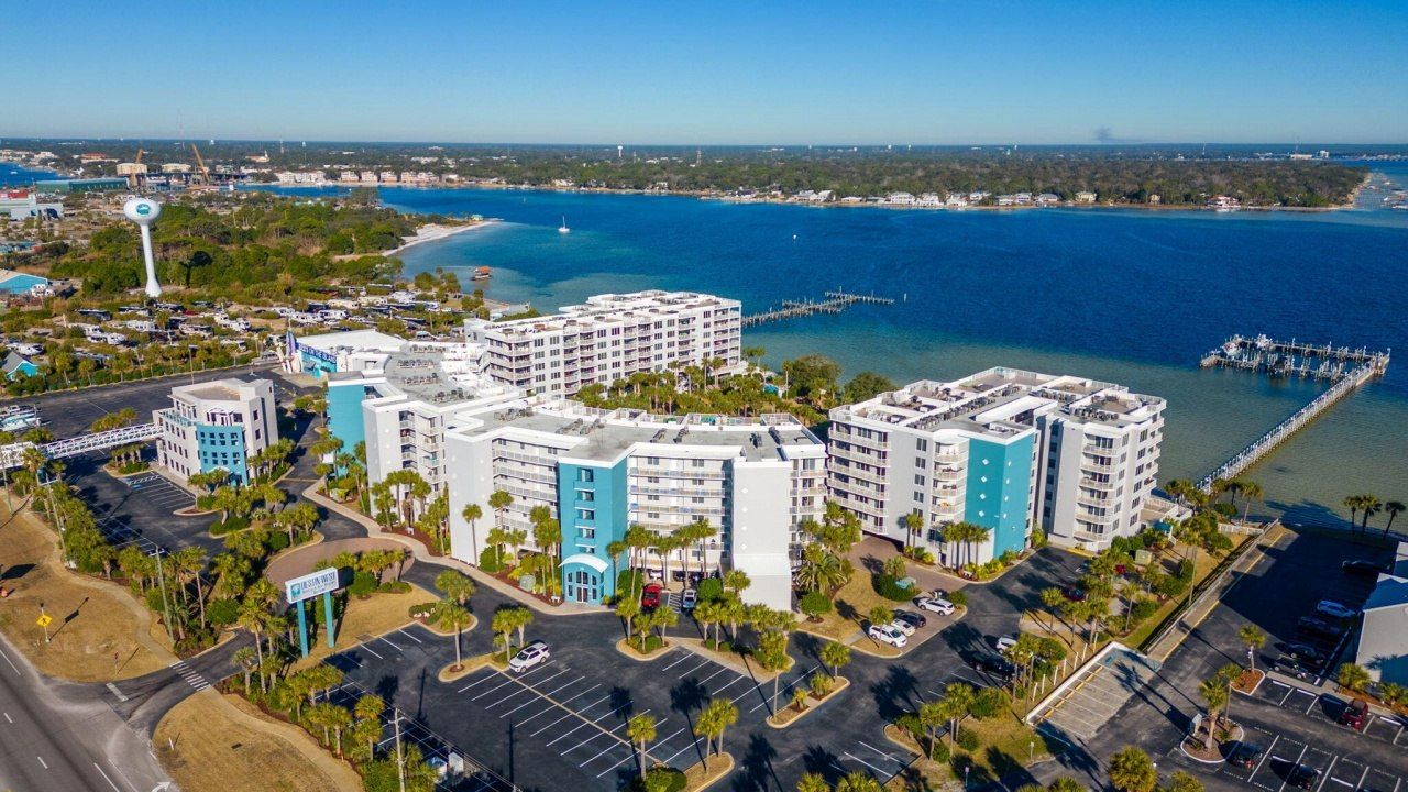 Welcome to your dream getaway at Destin West! This stunning 3-bedroom, 2-bath condo on the second floor offers breathtaking views of the Choctawhatchee Bay. Imagine waking up in the master bedroom to the tranquil bay scenery or stepping out onto your expansive patio with two levels, perfect for lounging and grilling while the kids enjoy the adjacent lazy river. One of the rare units with a garage on site, this condo boasts an upgraded kitchen featuring custom shaker cabinets, quartz countertops, and stainless steel appliances. The two additional bedrooms, including a kid-friendly bunk room, and the two large bathrooms have been tastefully updated with all-tile floors and tile showers/tubs. Destin West provides an array of amenities such as pools, play areas, gyms, and more**Seller to contribute $5,000 towards buyers closing cost! **Take a leisurely walk across to the Gulf of Mexico, where pristine white sandy beaches await. This unit comes fully furnished, making it the ideal turnkey retreat for your coastal living experience.