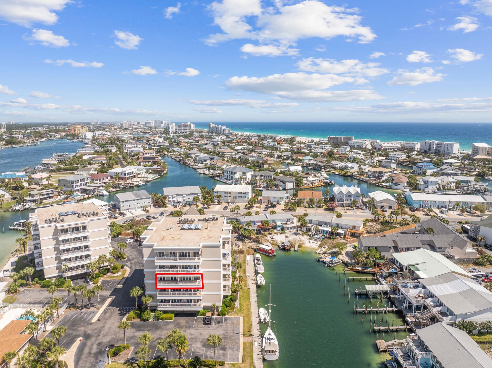 Wake up to breathtaking harbor views and experience the best of waterfront living in this beautifully maintained 2-bedroom, 1-bath condominium in the gated community of Sun King Towers, perfectly situated along the scenic harbor on Holiday Isle. This move-in ready coastal retreat is being sold fully furnished, making it truly turnkey and ready for immediate enjoyment. Recent updates include a new refrigerator, new ice maker, and a beautifully remodeled bathroom, adding fresh style and convenience to this inviting harbor-front residence. Large windows capture the vibrant harbor scenery, creating a relaxing backdrop for everyday living or a peaceful getaway. Residents of Sun King enjoy a variety of amenities designed for the ultimate coastal lifestyle, including a harbor-front community pool, clubhouse and community room for gatherings, an outdoor entertainment area perfect for watching Destin's famous harbor fireworks, and a highly coveted private marina. Boat slips are available on a first-come, first-served basis, allowing you to enjoy boating on the harbor without the expense of purchasing a private slip--a rare and valuable opportunity for boating enthusiasts. Located just minutes from the sugar-white sands of the Gulf, you're only a short stroll or bike ride to the beach. When you want to explore the harbor without driving, simply call the Destin Water Taxi to transport you to nearby restaurants, shopping, and entertainment throughout Destin.With short-term rentals not permitted, Sun King offers a peaceful and well-maintained residential environment--perfect for a primary residence, second home, or relaxing waterfront retreat.If you've been searching for a furnished harbor-front condo with boating access, beautiful views, and a prime Holiday Isle location, this is an opportunity you won't want to miss.
