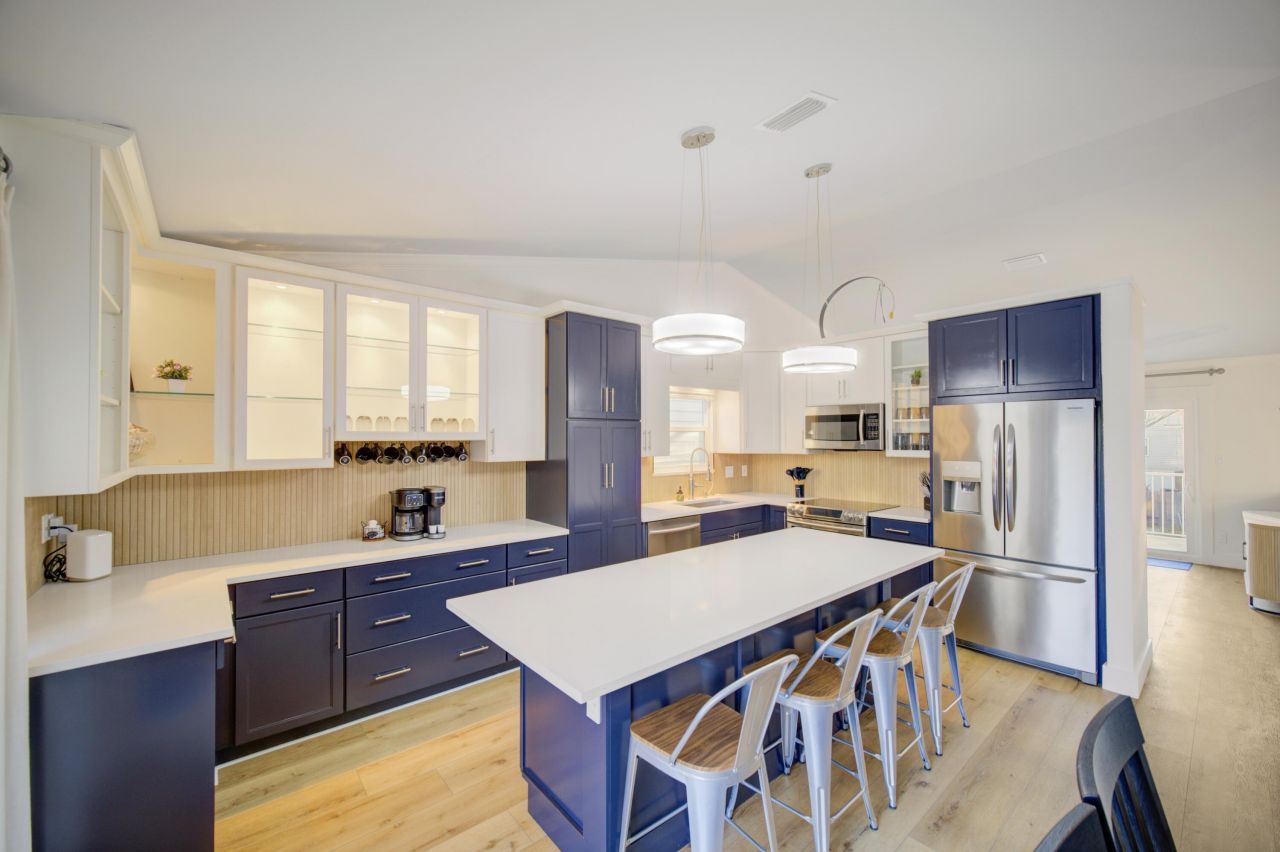 Newly renovated! New paint inside and out. Beautiful modern 2 bedroom 2.5 bath end unit townhome with easy beach access. Water view of the inlet and harbor. Perfect for a vacation rental, second home, or forever home. Located on a private street and LOW annual HOA fee of $355/yr to the master HOA (Holiday Isle Improvement Association). Thoughtfully designed bathrooms, LVP flooring throughout, 2 upper balconies, front porch and back patio area that offers plenty of space to spread out. NEW HVAC system, NEW water heater, spiral staircase from upper back balcony to lower patio. Impact rated windows/doors. Metal Roof. Solid custom kitchen cabinets with quartz countertops and large island. Zeroscape for easy exterior maintenance.