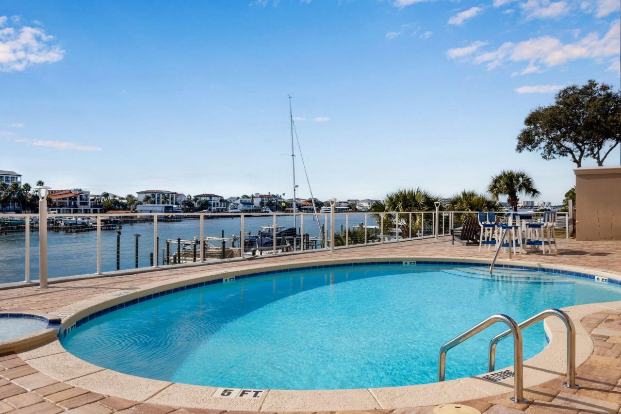 UNIT FURNISHED AND SELLER WILL PAY HOA FEES FOR TWO YEARS! Destin is called the 'World's Luckiest Fishing Village' and hosts the largest fishing tournament in the country for the entire month of October called the 'Destin Fishing Rodeo' that brings anglers from all parts of the USA to participate. Take the short walk from your unit to the dock and hop on your boat and you only are a short ride to the east pass. There you can hang a right, go past the renown 'Crab Island' sandbar where hundreds of boaters anchor up with fellow boaters for a wonderful day on the water or continue to some of the most pristine water for inshore fishing for redfish, speckled trout, flounder and other species. Or you can hang a left out of the pass to the Gulf of America and enjoy the consistently impressive catches of grouper and red snapper the gulf has to offer. Once back at your dock there is a cleaning table available for you to clean your catch and take it to one of the many restaurants on the harbor and they will cook you catch for a fantastic dinner on the harbor. The building has a new 50 year roof, the elevator has been upgraded to meet the new codes, the pool has received new plumbing and has been resurfaced. The pool deck has new pavers and lighting, there was a 1.4M investment made to replace the retaining wall, ramp to the docks, and new handrails. All units have hurricane impact windows and doors. There is a new fence on the west side of the property and new landscaping around the property. The electrical service has been upgraded with a new distribution panel and switch gear to meet code. The material is on site and construction on a new 6 slip boat dock is underway, one slip is assigned to each unit. Units have new AC unit and unit has 1 tandem and 1 single assigned parking spaces