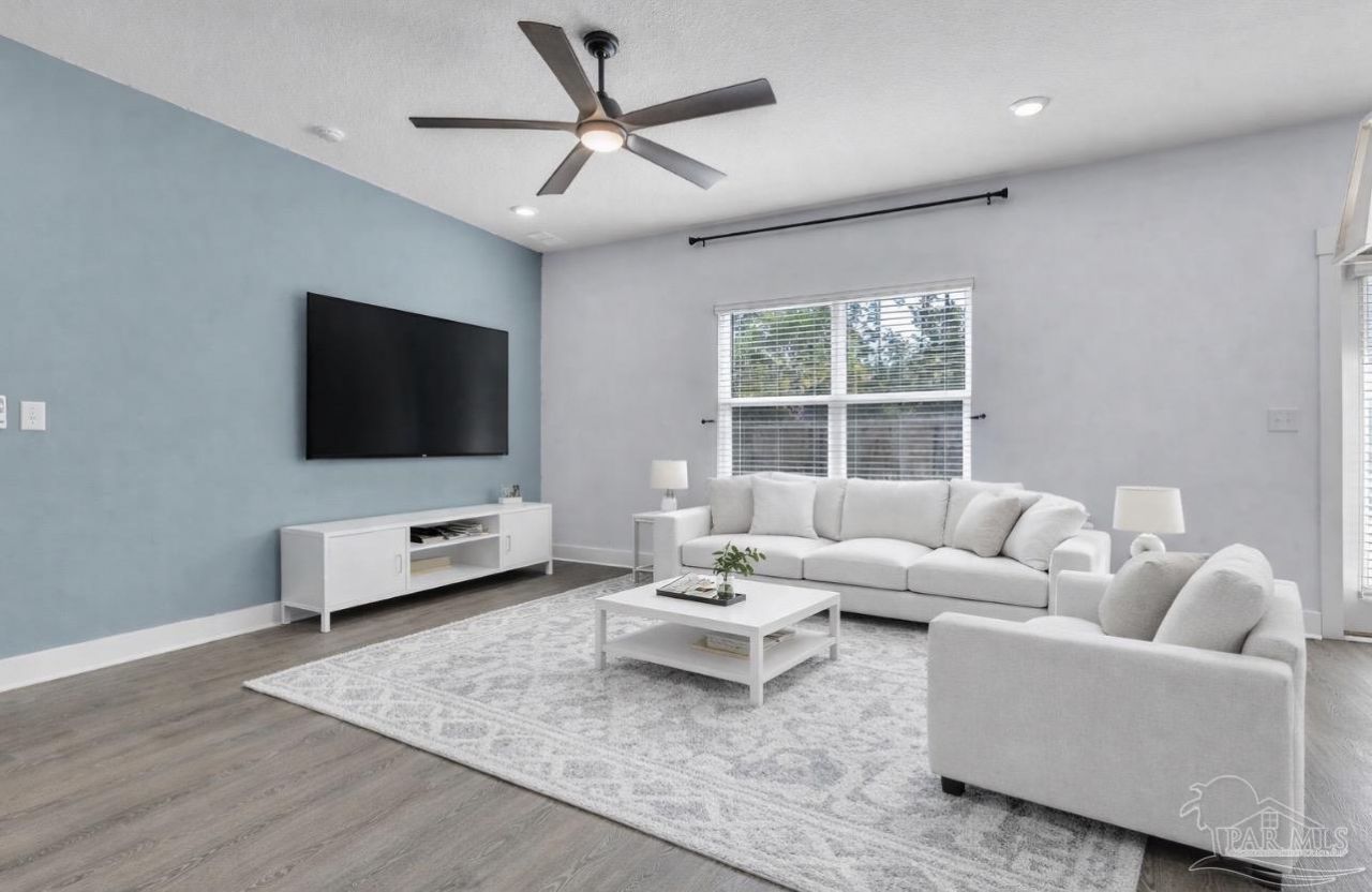One of the largest floorplans in Water Leaf, offering 2,552 sqft with a rare 5-bedroom layout and spacious loft area. Welcome to this newer construction Craftsman-style home, a true gem blending timeless design with modern comfort. Assumable VA loan option with qualified Buyer. The Hardie board exterior delivers both durability and curb appeal. Guest bedroom suite is on the ground floor. Step inside to an inviting open-concept living space with LVP floors and custom-built wainscoting paneling that define the Craftsman aesthetic. The kitchen is a conveniently central to the living space - complete with an island breakfast bar, granite countertops, stainless steel appliances, an undermount sink, smooth-top range, quiet dishwasher, and a generous pantry. No need to order a refrigerator! Adjacent to the kitchen, the dining area offers the perfect setting for gatherings. With two living spaces - one upstairs and one down - there's room for everyone to spread out. The primary suite is on the second level in a tranquil retreat with a large walk-in closet. The ensuite bath is a spa-like oasis with dual vanities, garden tub, and separate shower. Three additional bedrooms and a full bath share the second level, while a first-floor guest suite and bath offer ideal separation for visitors and multi-generational living. The backyard offers an extended patio space with a privacy fenced in sanctuary, and a portable hot tub that conveys. For storm protection and wind mitigation insurance credit, this home comes with FabricShield hurricane protection and is located in the desirable Flood Zone X (no flood ins required). No HOA! Other great amenities include upgraded fixtures, updated mirrors in all bathrooms, Smart Home Connect System which includes your video doorbell, keyless entry, and fabric hurricane window protection. All of this and located in East Gulf Breeze (Midway) just 17 minutes from Pensacola Beach and 19 minutes to Navarre Beach.
